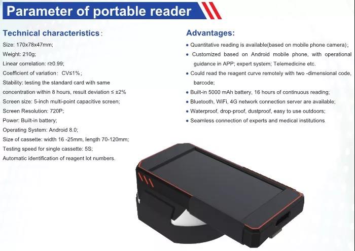在體外診斷展館,凱創生物向外國友人分享了 我們此次最新產品AFS3000B全自動免疫分析儀,并展示了融入德國工業設計理念的手持膠體金免疫分析儀。